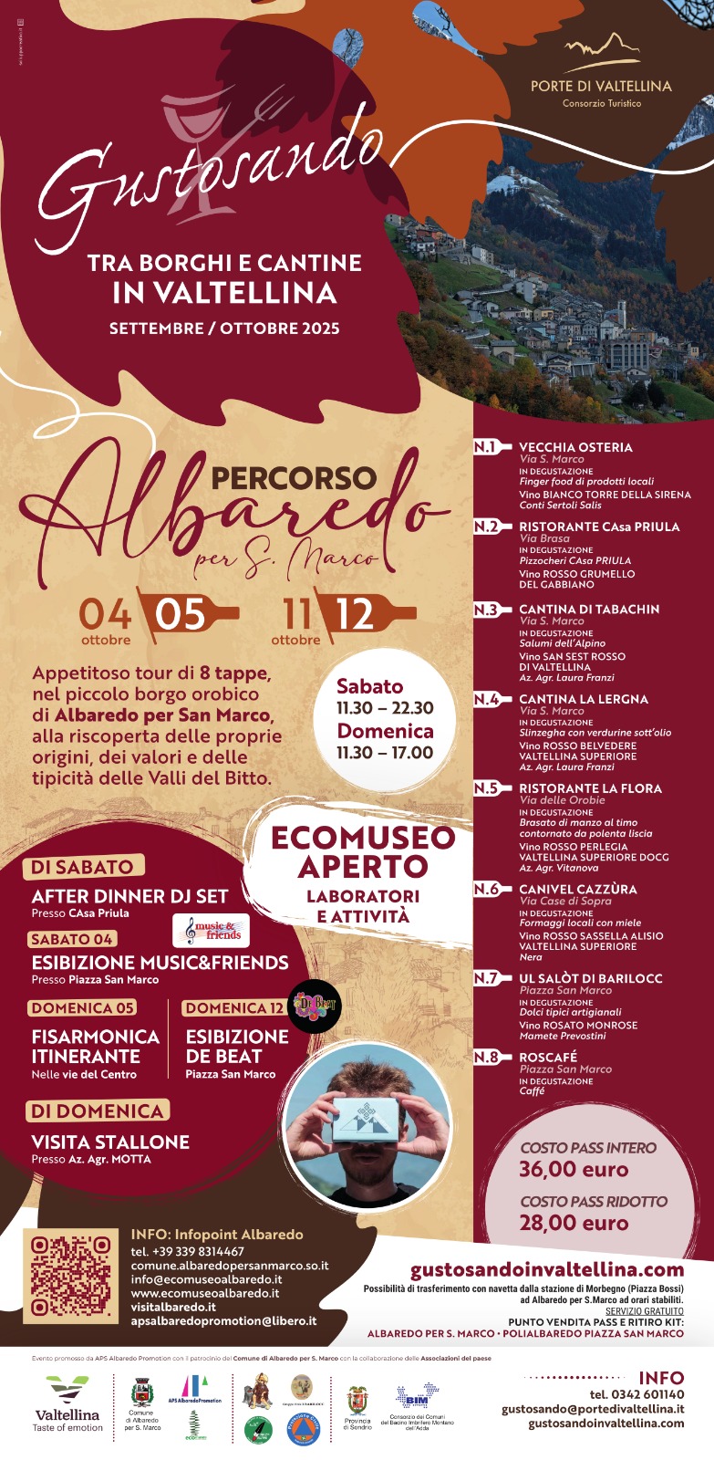 Ritorna lo storico evento di Gustosando, nei weekend del 4 e 5 Ottobre e 11 e 12 Ottobre, Albaredo per San Marco si colora di musica, sorrisi e buon vino!
